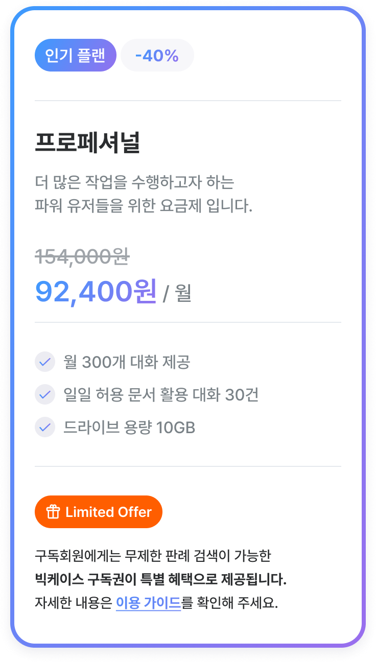 합리적인 비용으로 법률 AI 서비스를 이용하고 싶은